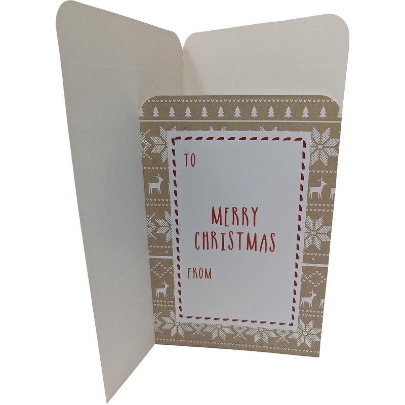 • Greeting: To... Merry Christmas From.... Slits to contain gift cards and vouchers or cash.