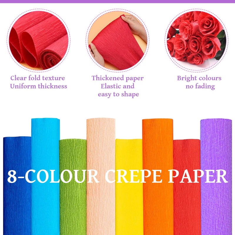 8 Colours Crepe Paper Crepe Paper Colourful Crepe Paper Rolls Florist Crepe P...