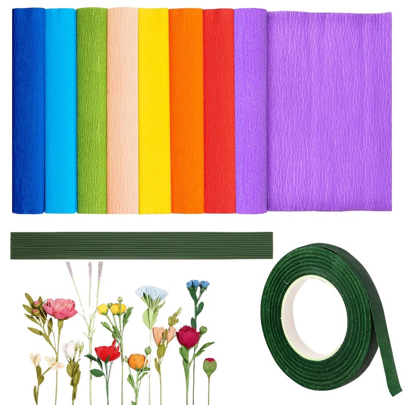 • Package quantity: you will receive 8 rolls of different coloured crepe paper, each roll is 250 x 25 cm, as well as 20 x 20 cm green flower wire stems and 1 roll of green flower ribbon. The perfect combination is enough to spend a nice time with your family and friends.