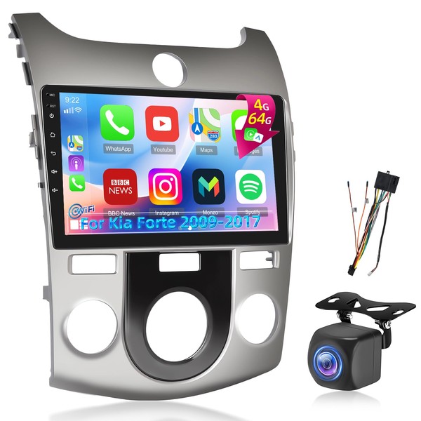 [8 Core Qualcomm 4+64G] for Kia Forte Car Stereo 2009-2017 with Wireless Carplay and Android Auto - 9 Inch 1280 * 720 IPS Touchscreen Android Car Radio - DSP/GPS/WiFi/SWC + AHD Backup Camera