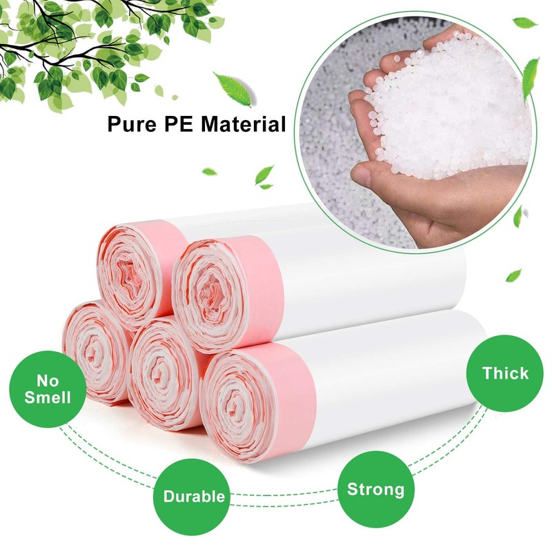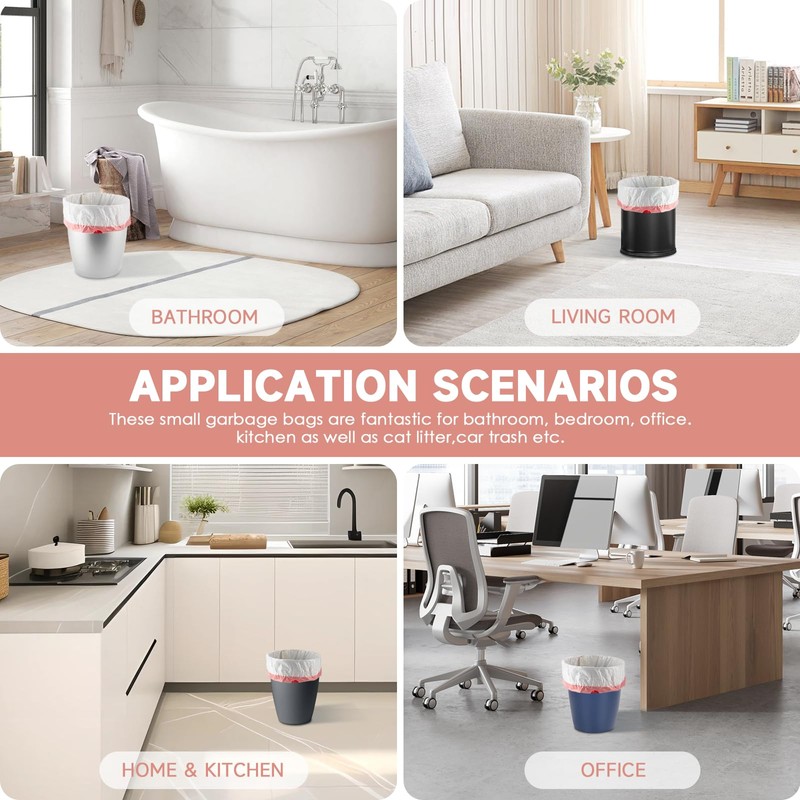 - 8 Gallon Trash Bags Drawstring Unscented – The convenient drawstring makes tying and carrying effortless, while the unscented formula ensures no unwanted odors. These Medium Garbage Bags are leak-resistant and tear-proof, keeping your spaces clean.