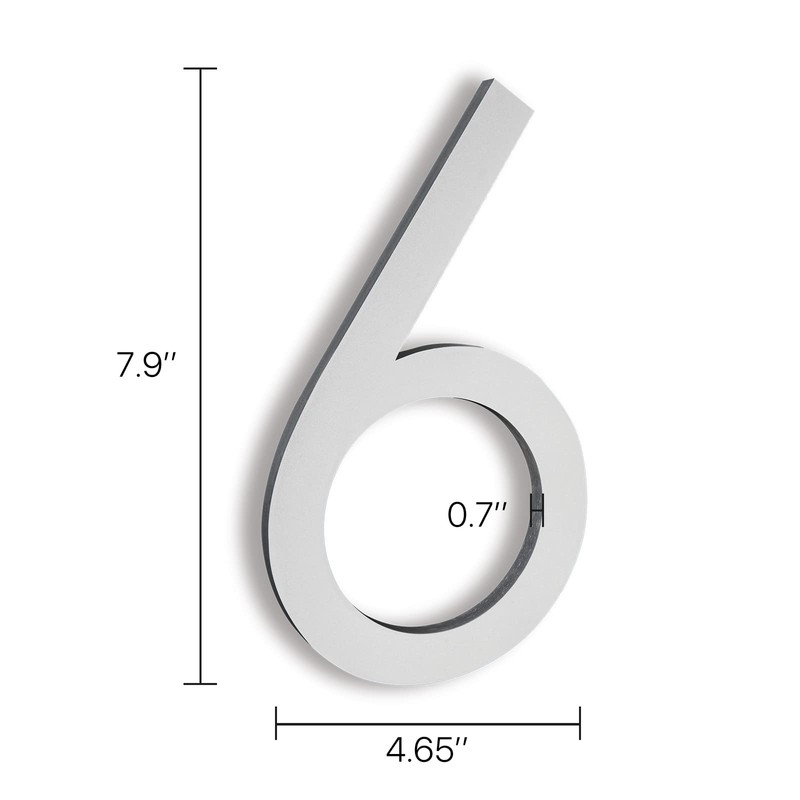 8 Inch Addresses Numbers For House,Modern House Numbers Large Silver Exterior Street Metal Reflective floating house numbers for outside Floating Mount Or Flush Mount Aluminum Home House Numbers