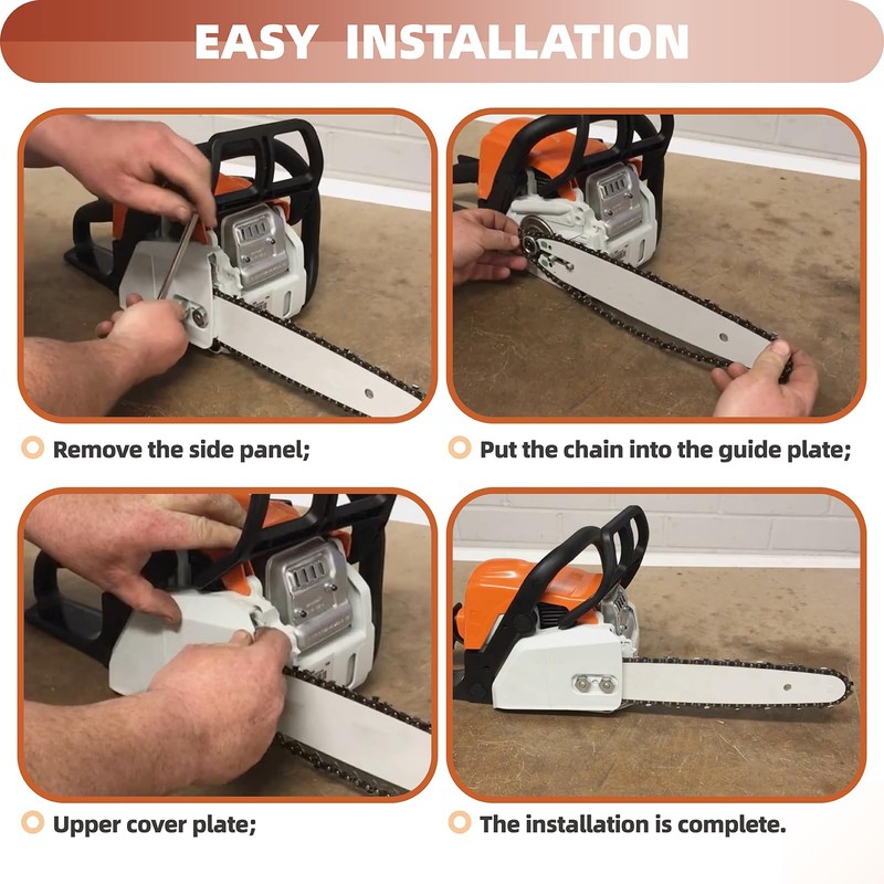 • Lubrication Protection: The 8" chainsaw chain comes with protective oil. The oil storage grooves in each drive link and oil storage bump in each tie strap effectively distribute more oil throughout the chain, reducing friction with lower tendency for stretching and enhancing its longevity