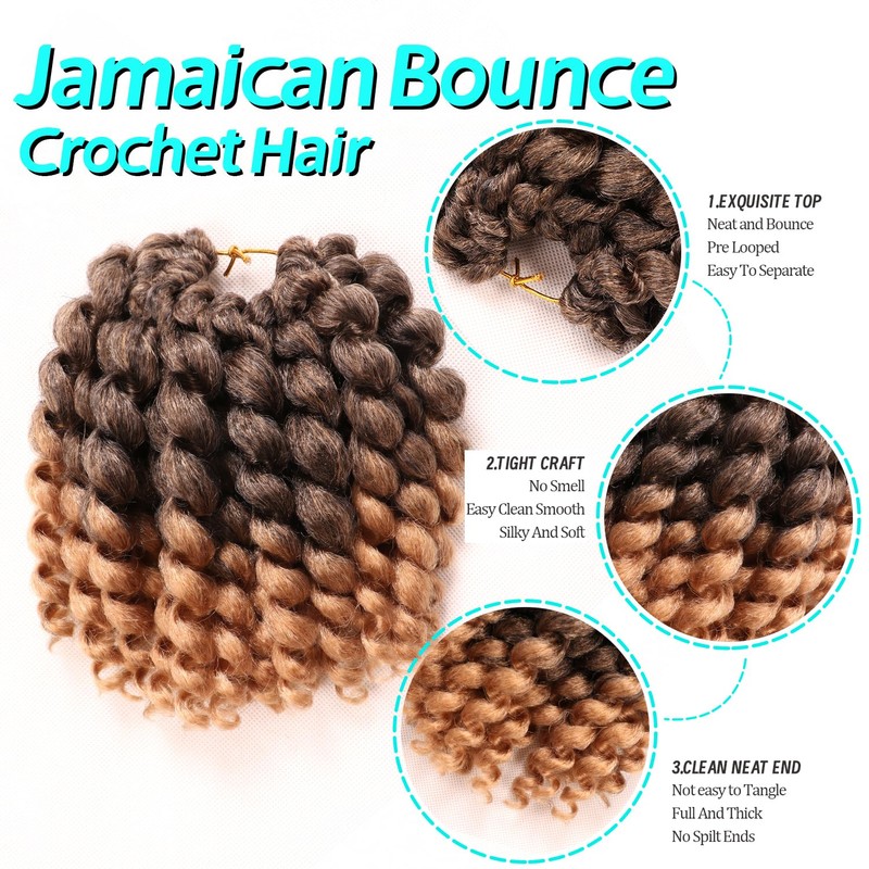8 Inch Jamaican Bounce Crochet Hair 22 Strands Jumpy Wand 4 Packs Curly Crochet Hair for Black Women (8 Inch 4 Packs, T1B-27#)