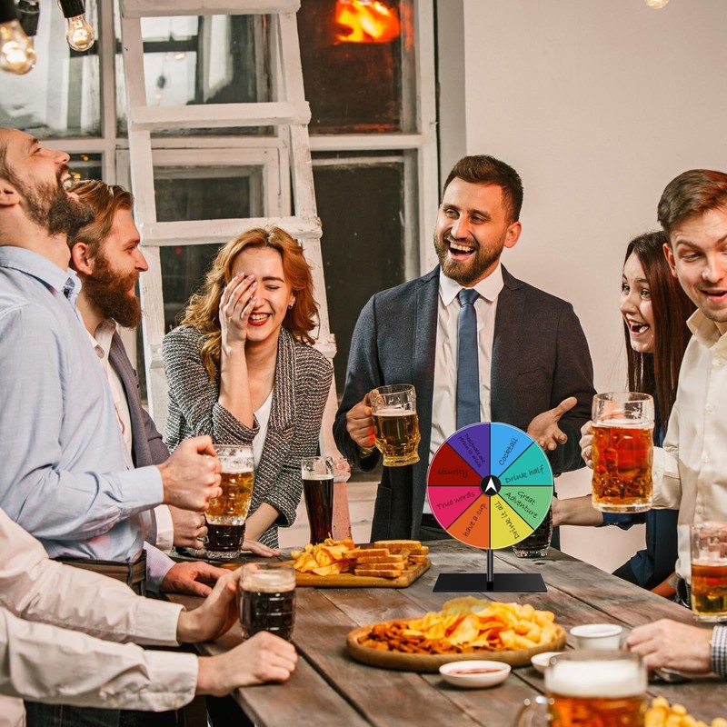 - Perfect for every occasion: ideal for parties, charity events, casino nights, classroom activities, and holiday celebrations. This interactive table spinner engages kids, teens, and adults alike with its vibrant design. Whether you're hosting a fundraiser, corporate event, or family game night, the 8-zone wheel adds excitement to any gathering.
