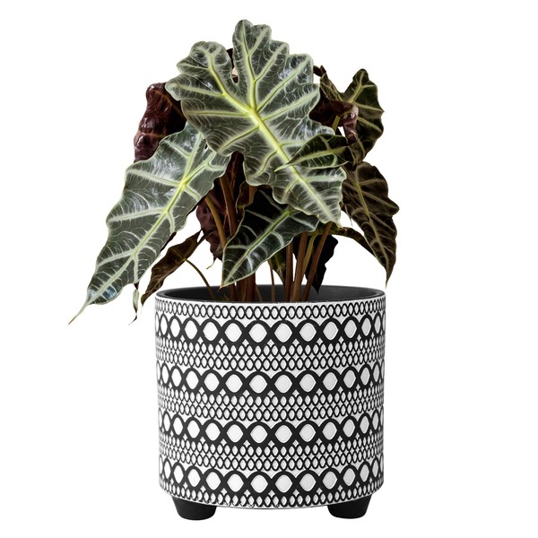8 Inch Modern Design Ceramic Plants Pot with Drainage Hole, Black/White, C-953-B-5