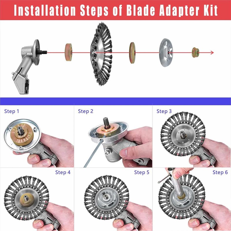 8 Inch Steel Wire Rotary Brush Cutter Trimmer Head Weed Blade Cutter with Universal Adapter Kit Compatible with Husqvarna, Stihl, Gardening Lawnmower, Moss Grass Rust Removal