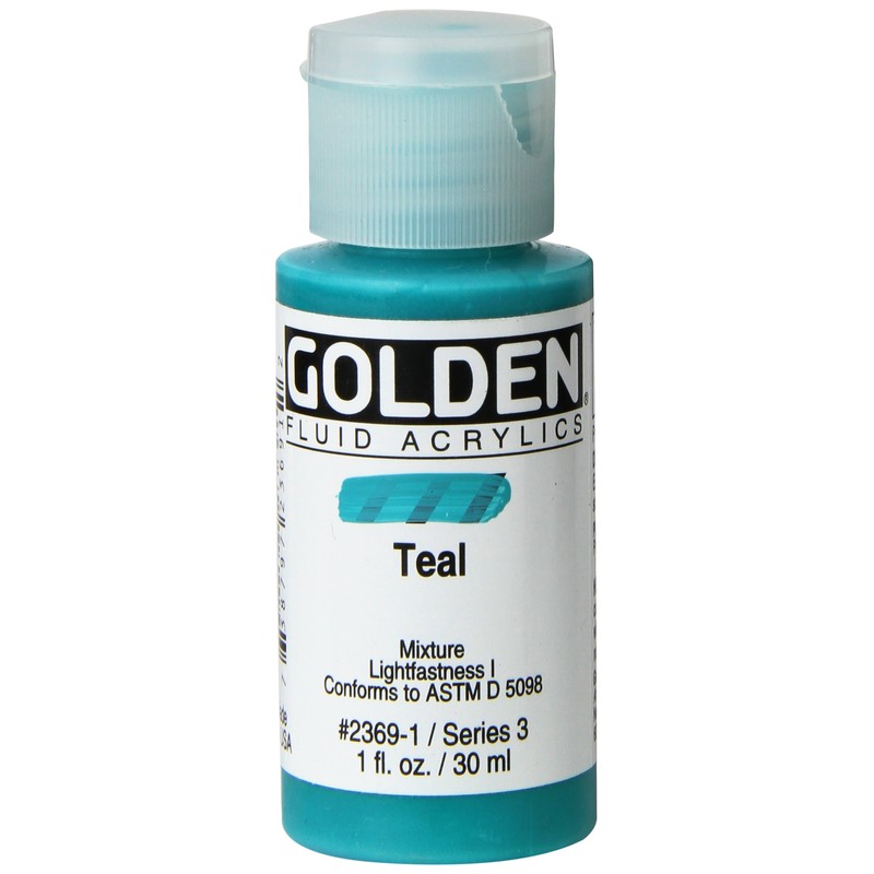 0002369-5 Color: Teal Features: -Fluid acrylics are ideal for spraying, brushing, staining, and can be mixed with other Golden products. -Blend with airbrush medium for spray application. -Excellent for fabric application. -Category: Painting. -Age Group: Adult. Product Type: -Paint. Country of Manufacture: -United States. Dimensions: Overall Height - Top to Bottom: -7". Overall Width - Side to Side: -2". Overall Depth - Front to Back: -2". Overall Product Weight: -0.63 lbs.