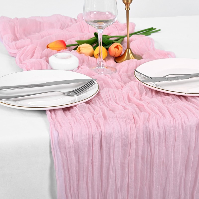 8 Pack 10Ft Cheesecloth Table Runner Light Pink, 20 x 120 Inch Rustic Gauze Boho Cheese Cloth Table Runners Wedding Long Table Runner for Wedding Party Bridal Shower Table Decoration