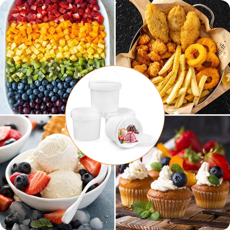 Ice cream tubs are made of PP plastic material, which is safe and non-toxic. Great for storing your favorite food, ice cream and more!