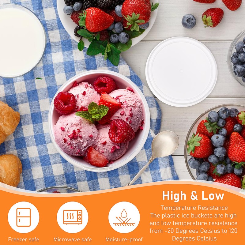 - Safe and Durable: our ice cream buckets with lids are made of quality PP plastic, safe and lightweight, sturdy in function performance, heat resistant and can withstand a temperature range from minus 20 to 120 degrees