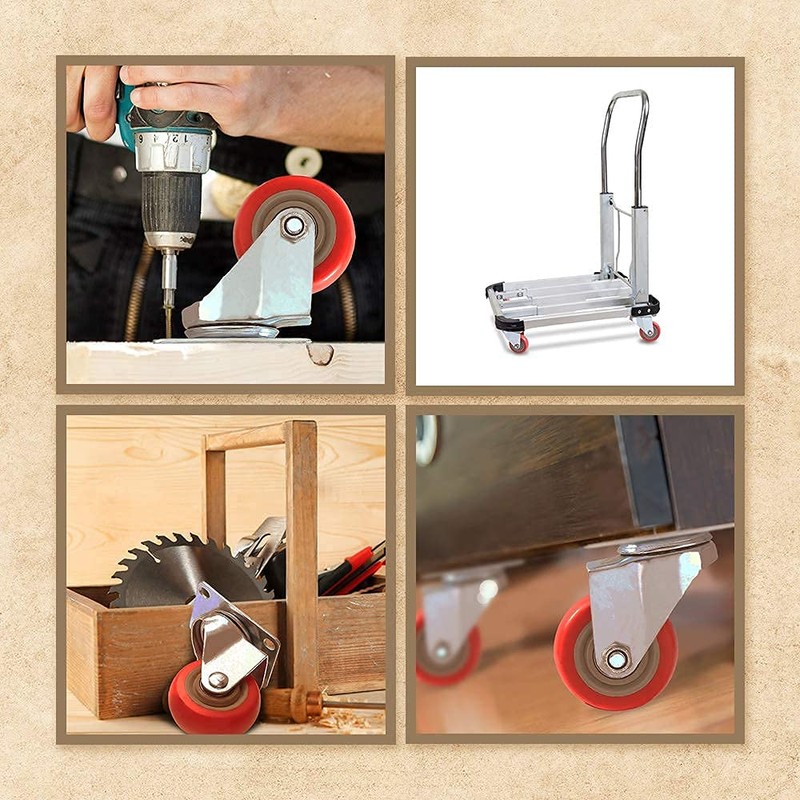 • 360-DEGREE MANEUVERABILITY - Plate casters set of 8 heavy duty wheels with a 360-degree swivel bracket that glides easily over various types of flooring, allowing smooth and silent operation. Double ball bearings provide better steering and maneuverability for light furniture, offices, etc.