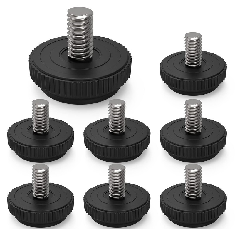 The stainless steel screw furniture leveling feet help level your furniture with ease get rid of the wobble.Screw in leveler to the height you desire to level your chairs and tables.They allow raising your furniture, prevent your furniture and floor from being scratched and damaged,and reduce friction and noises while moving furniture. Sizing - 5/16" diameter shaft - 18 threads per inch - 5/8" threaded stud length - 1.2" diameter nylon base.