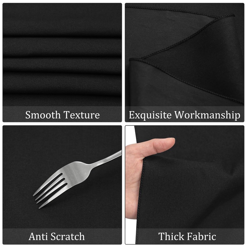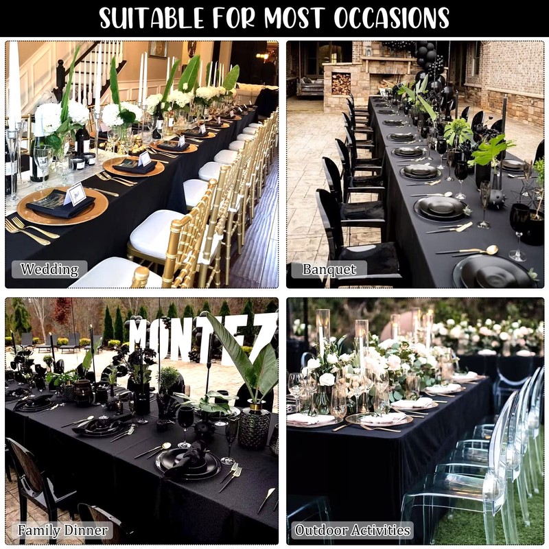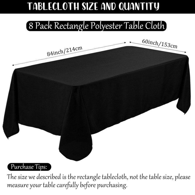 - Package Include: you will get 8 pieces black polyester rectangle tablecloth, enough quantity is suitable for wedding banquets and various parties, the size of each tablecloth is approximately 60x84 inches / 153x214 cm, which is large enough to cover 4FT rectangle tables, classic in color and exquisite in design, the solid color makes them suitable for various occasions, instantly heightening the elegance of your table.
