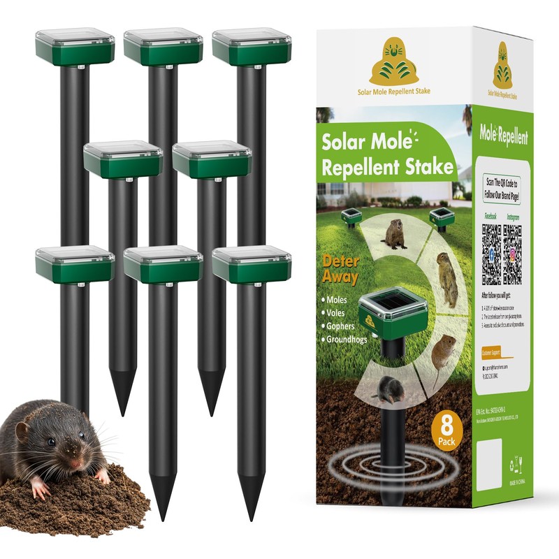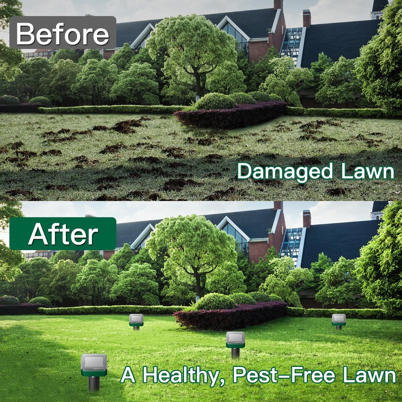 - 【Effectively Repel Moles】Our mole repellent for lawn emits powerful ultrasonic vibrations every 30 seconds, creating an underground environment that makes moles feel uncomfortable. It effectively helps you get rid of moles, voles, gophers, and groundhogs from your lawns.