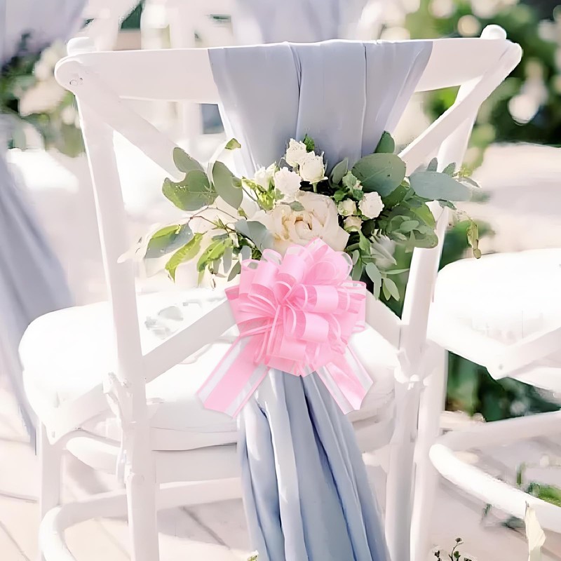 8 Pack Pull Bows for Gift Wrapping (6 Inch, Pink) - Pre-Tied Ribbon Bows for Wedding, Party Decorations, Gift Box or Flower Arrangements