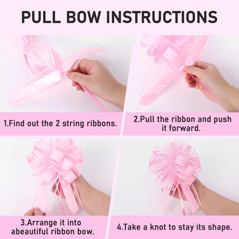 - ✨ Instant Elegance with Pull Bow Design Unlock stunning gift presentations in seconds! Our pre-tied pull bows feature an ingenious design: simply hold the ribbon and gently pull the tails to instantly form a perfect, voluminous bow. No tying skills required - achieve professional results effortlessly.