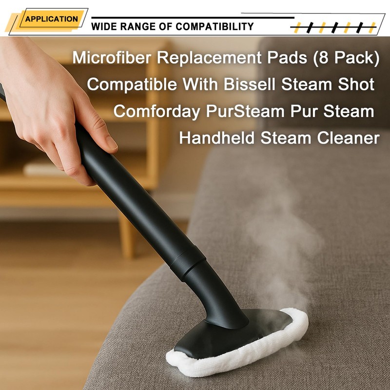 8 Pack Steamer Mop Pads,Compatible with Bissell Pur Steam Shot, Dupray Pursteam, Comforday Handheld Steam Cleaners,Washable Microfiber eplacement Pads for Floor & Surface Cleaning