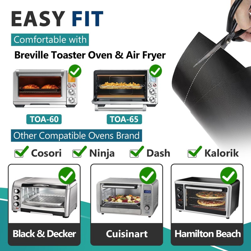 - Reusable & Multifunctional: Our reusable air fryer sheets liners for Breville toaster oven are versatile and can be used as grill mats, baking mat, oven liners and roaster pan liners. Ideal for everyday cooking and baking, these non-stick air fryer liners help keep your kitchen clean and tidy.