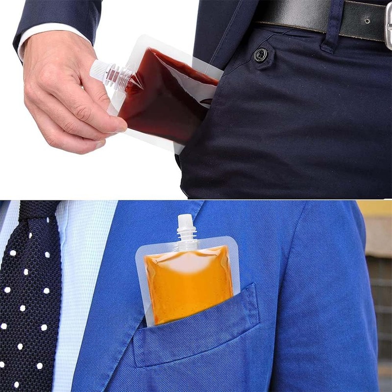 - Portable and space saving: Liquid bags, small, lightweight, foldable, compact, and easier to fit into bags and suitcases than bottles. And the bottom of the bag can stand upright on the table, which is convenient to use