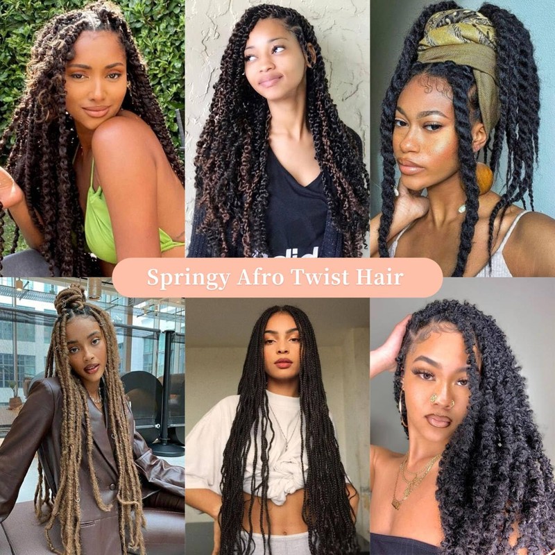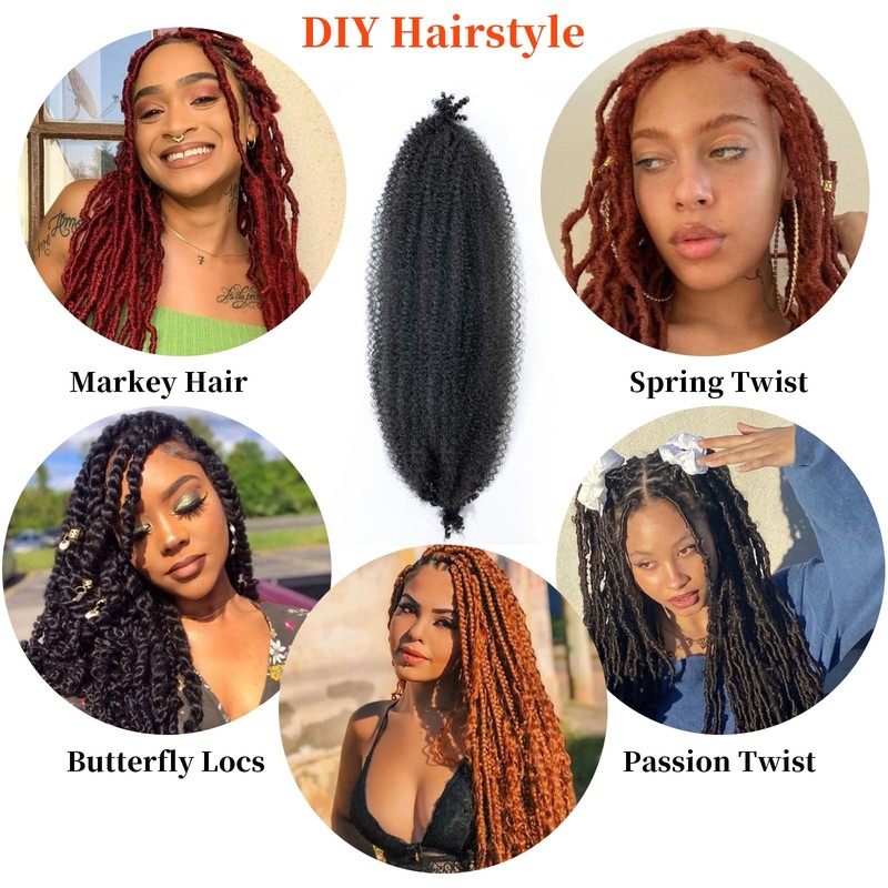 - 💝Verpackung: Das federnde Afro-Twist-Haar ist in den Längen 25,4 - 76,2 cm erhältlich. Erhältliche Farben: 1B, 27, 4, T27, T30, Bug, 350. 8 Packungen/Los. Normalerweise decken 7–8 Pakete den gesamten Kopf ab. Kommt mit Haarringen und kostenlosen Häkelnadeln.