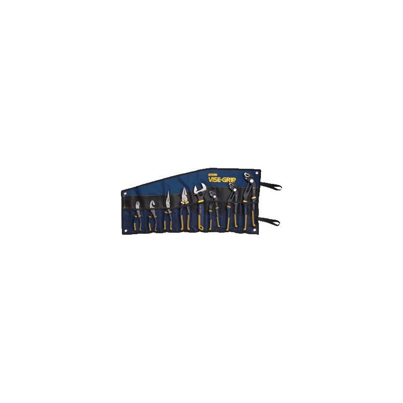 Set includes (1) each of an 8", 10" and 12" GrooveLock pliers, (1) 10" Adjustable wrench, (1) 8" Long Nose pliers, (1) 8" Linesman's pliers, (1) 6" Diagonal Cutter and (1) 6" Slip Joint pliers Includes Kitbag Press and slide button quickly adjusts lower jaw All purpose jaw grips on round, flat, square and hex shapes More groove positions provide the optimum hand location for a better grip on the work piece ProTouch Grips provide extra comfort and reduces hand fatigue Ratcheting action allows GrooveLock to be adjusted from the open position up to the work piece by pushing the handle up - no need to press the button Anti-pinch design prevents handles from pinching