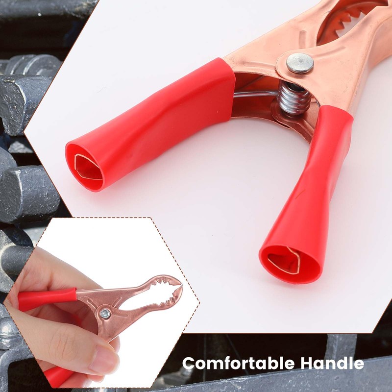 - Heavy-Duty Insulated Spring Clip Set: Available in red and black, each set of 8 7×4cm (2.76×1.57 inches) copper-plated iron spring clips, equipped with PVC insulation sheaths, designed for high-intensity electrical operations such as automotive repair and battery testing