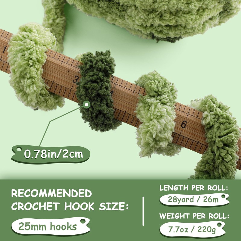 - Extra Large Blanket Yarn Size: A set of 8 rolls, each roll bulky yarn weighs 7.7oz/220g, length is 28 yards/26 metres, diameter is 0.78 inches/2 cm. Knitting gauge/number of crochet hooks: US 50 (25 mm), 2.5 stitches - 2.5 rows = 4 inches (10 cm).