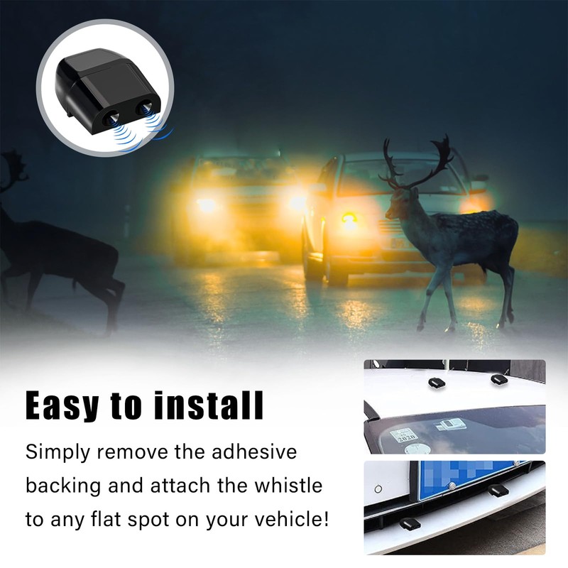 - 【Easy to Install】: This deer alarm is self-adhesive. It comes with tape on the back for easy and convenient installation. You can install it in front of your bumper or car chassis. It can be easily removed from the base when you need to wash your car, which will not cause any damage to your car's paint.
