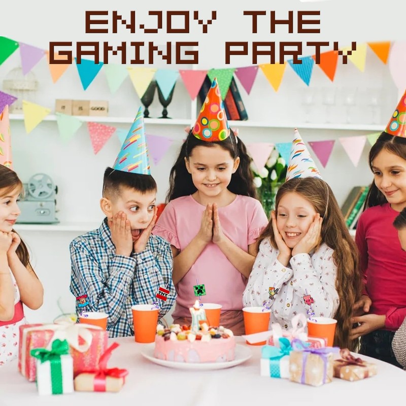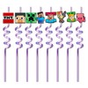 8 PCS Gaming Reusable Straws, Colourful Curly Drinking Straws with Charms, Pixel Style Plastic Straw for Kids Adult Birthday Party