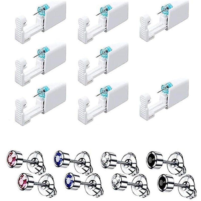 - 【Package Contentsn】:Our disposable ear piercing kit includes 8 single-use piercing guns and 4 pairs of colorful stud earrings. With all the necessary components, this comprehensive kit ensures a hassle-free ear piercing experience.