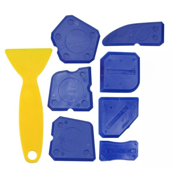 • 【Package Content】Includes 7 pieces blue sealant tools in different shapes and 1 piece yellow scraper