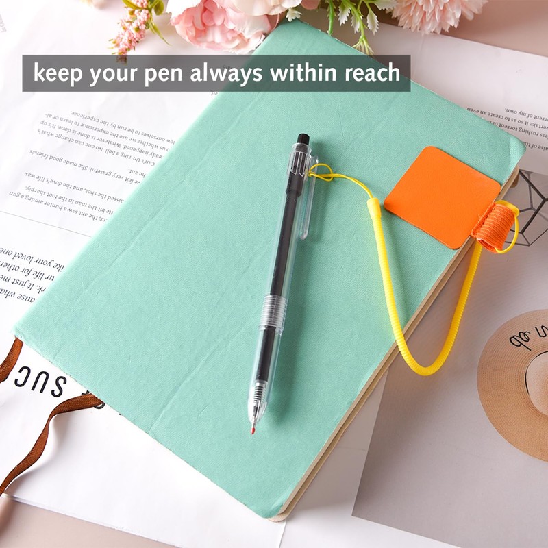 Simply attach one end of the elastic cord to your pen and the other to a secure spot, such as a clipboard, desk, or bag. The elastic stretch ensures your pen remains accessible at all times.