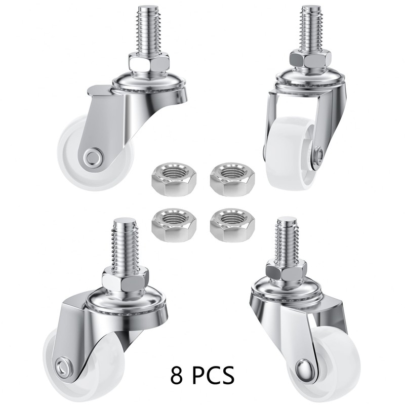 8 PCS Swivel Stem Casters,M8 White 25mm(1 inch) Castor Wheels