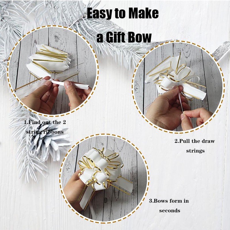 - Easy to use: You will get a flat package of bows for gift wrapping,need to assemble by yourself.First you need to find 2 small ribbons,hold the junction with one hand and pull them down with the other hand,and then a beautiful butterfly will be formed immediately.You can tie a knot at the top so the bow doesn't come loose.