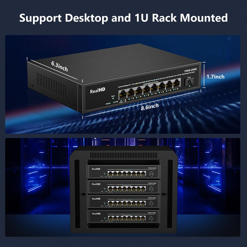 - 【2.5 Gigabit Ports】The switch offers 8 x 2.5Gigabit Ethernet ports that comply with the IEEE802.3bz (2.5G) standard, supporting adaptive speeds of 10/100/1000M/2.5G. With a backplane bandwidth of 60Gbps, it excels in data forwarding performance.