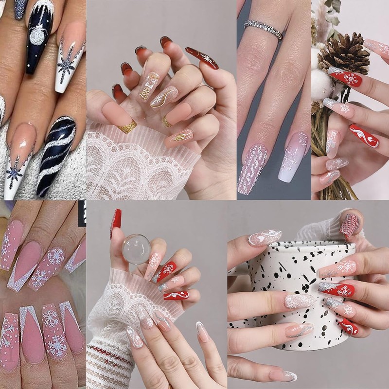 - Unique Nail Sticker Set: You will get 8 sheets gold snowflake nail art stickers for acrylic nails supply, many pattern for you to choose, xmas trees line nail designs, and satisfy your rich imagination of nail diy