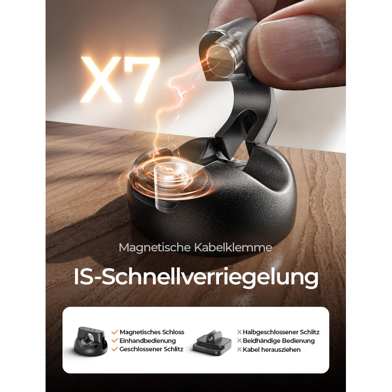 - Kabelclips für einfache Einhandbedienung: Die magnetischen Kabelclips von LISEN verfügen über einen einzigartigen magnetischen Öffnungs- und Schließmechanismus, der das Anbringen oder Entfernen von Kabeln mit nur einer Hand erleichtert. Im Gegensatz zu gewöhnlichen Kabelhaltern ermöglichen der um 60° drehbare Schaft und das magnetische Verschlusssystem ein schnelles Greifen oder Hinzufügen eines Kabels in Sekundenschnelle und gewährleisten so Komfort und Effizienz.