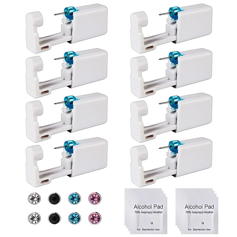 Entdecken Sie unser 8 Stück Ohrloch Stecher Set, das perfekte Kit für sicheres und steriles Ohrlochstechen zu Hause oder im Salon. Jeder der 8 Ohrstecker ist aus hochwertigem Edelstahl gefertigt und mit funkelnden Zirkonsteinen in verschiedenen Farben verziert. Das Set ist ideal für empfindliche Haut und minimiert das Risiko von Reizungen oder Infektionen.