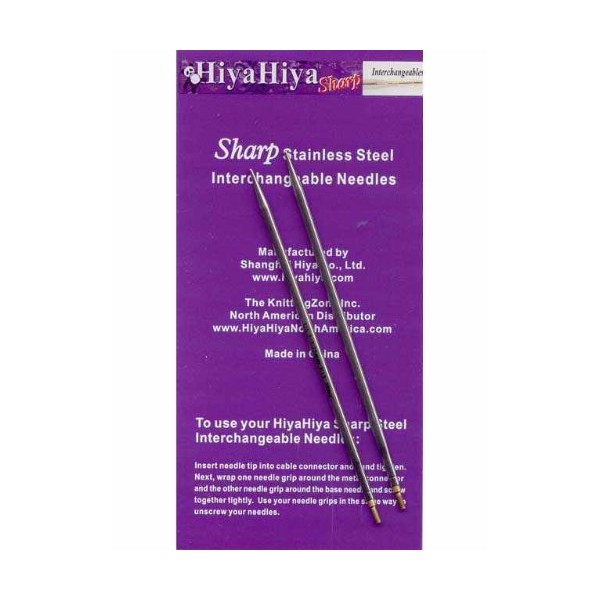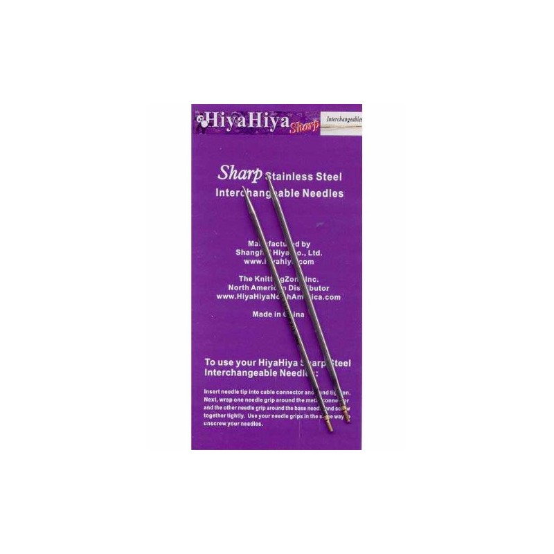 Increase your flexibility by purchasing extra needle tips for your HiyaHiya interchangeable needles. HiyaHiya 5 inch interchangable tips are comprised of a 4.25 inch tip and a .75 inch metal connector for a combined length of 5 inches. Package includes set of 2 tips.