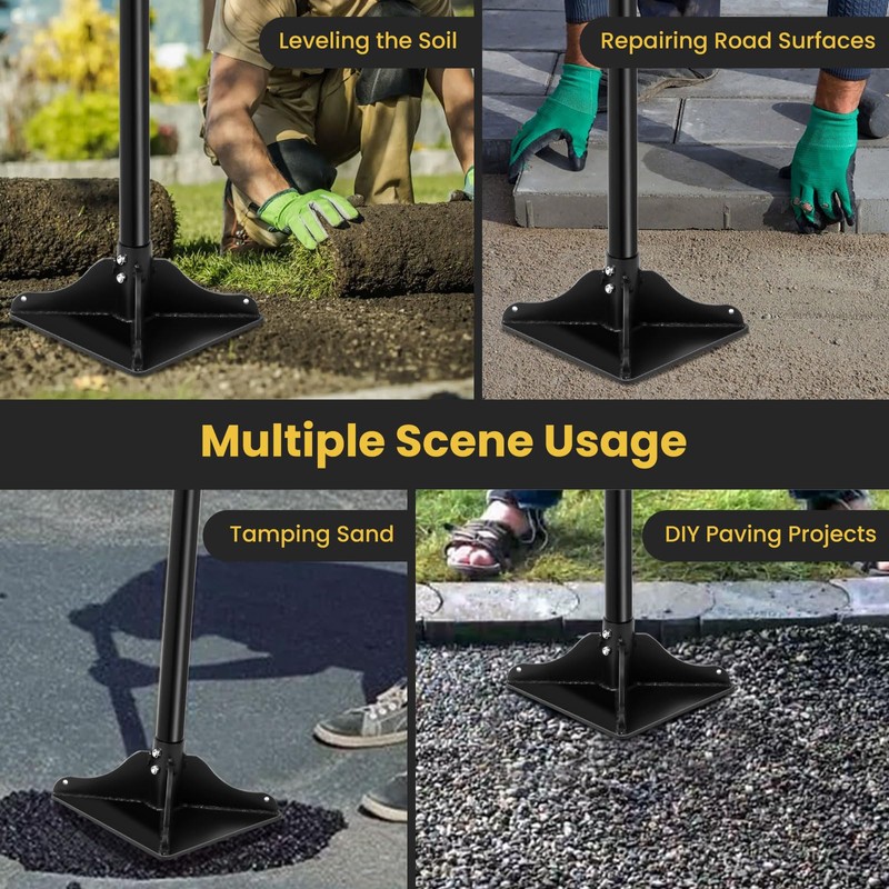 • VERSATILE APPLICATIONS: The hand tamper is suitable for tamping asphalt, gravel, sand, stone, dirt and decorative concrete applications. This ground tamper tool is perfect for leveling ground, installing pavers and repairing asphalt