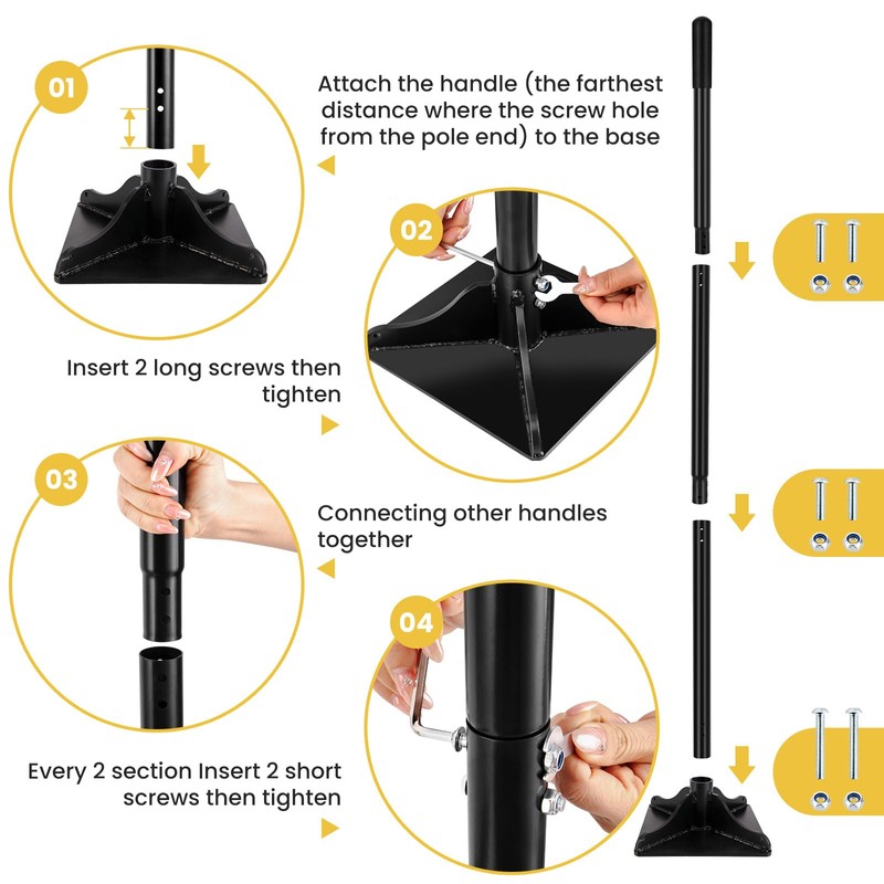 Anti-Loosening Nuts And Screws, Secure Connection: The connection between the tamper base and the handle and the connection between each section of the handle are fixed with two screws, and the solid connection prevents the tool from loosening and damaging easily.