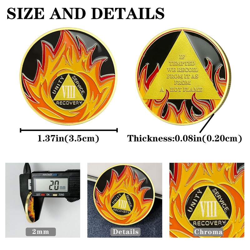 - 🪙Inspirational Inscription: The back of this AA chip bears the powerful message, "If tempted, we recoil from it as from a hot flame," serving as a reminder to stay vigilant against relapse. This meaningful engraving empowers the bearer, providing strength during challenging times, and makes this sobriety chip a source of daily inspiration for both men and women on their recovery journey.