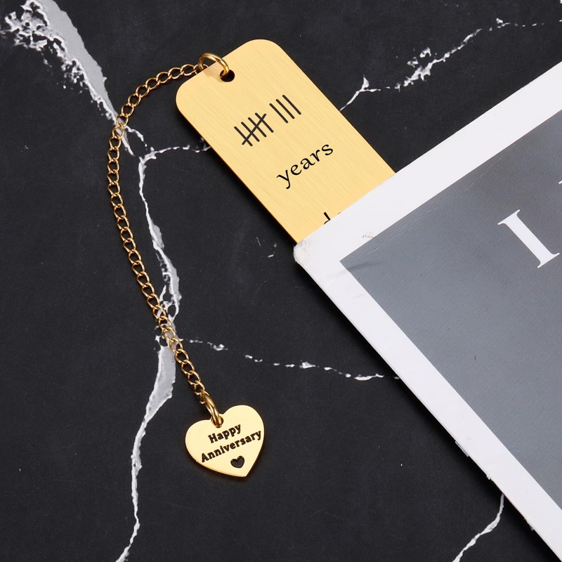 - ✨ 【A lasting souvenir】✨ ①made of eco-friendly & safe stainless steel material; resists tarnish, water, and time-a waterproof heirloom for generations.②no rust; no fading; sturdy and strong enough to last long time!③an exquisite bookmark with a happy anniversary pendant chain, adds a romantic touch.④product size: 5.11*1.02 inch; thickness: 0.02inch, this size can be applied to most books⑤come in a nice gift box, perfect for giving. Romantic 8 years anniversary gifts bookmark for couples him her.