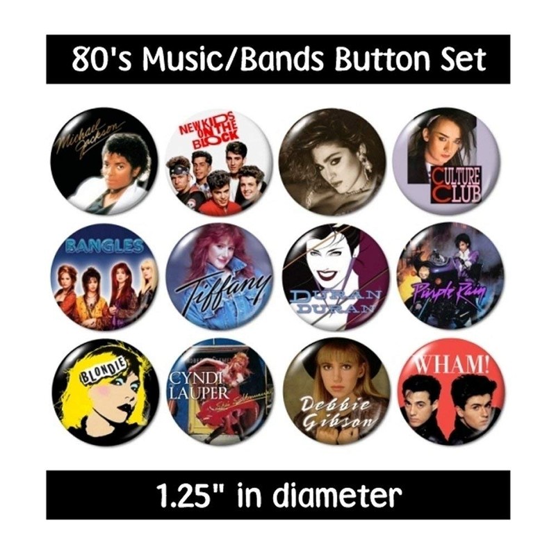 These beautiful 1.25" buttons contain awesome images of your favorite 1980's singers and groups. They are great gifts for 80's fanatics and are fun to hand out at your 80's party. They are also wonderful for scrapbook pages, handmade jewelry items, stocking stuffers, party favors, and cupcake toppers. This particular set contains images of Michael Jackson, New Kids On The Block, Madonna, Culture Club (Boy George), Bangles, Tiffany, Duran Duran, Prince, Blondie, Cyndi Lauper, Debbie Gibson, and Wham. Please see the additional image so you can get a better idea of the size. Thanks!