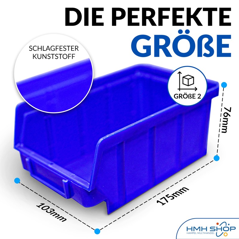 80 x Stacking Boxes, Blue, Size 2, Stackable, Blue Display Box (L x W x H), 175 x 103 x 76 mm, Shelf Box, Storage Box, Storage Boxes, Stacking Boxes