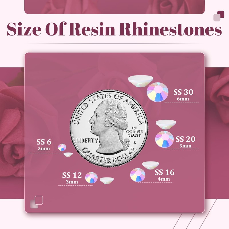 - 💎WIDE APPLICATION -- These sparkling iridescent resin rhinestones are perfect for creating dazzling looks. Use them for face makeup, eye makeup, body art, 3D nail art or bedazzling DIY crafts like shoes, tumblers, mugs, bottles, phone cases, popsockets, scrapbooks, photo frames, diamond paintings, greeting cards, bags, glasses, guitars, keychains, hats, masks, hair clips, bracelets, wristbands, clothing, wedding dresses, and more. Apply it to what you want to bling!