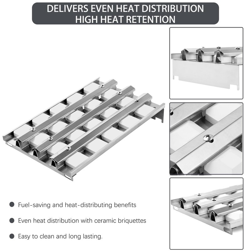 - 【EXCELLENT HEAT AND EASY TO INSTALL】Effectively radiates heat and outlasts other briquettes, To ensure you choose the correct replacement part for your grill, we recommend removing the original part and comparing it to what we list. It is not necessary to remove and clean the briquettes from the tray after every grilling. They burn themselves clean during the next cooking operation.