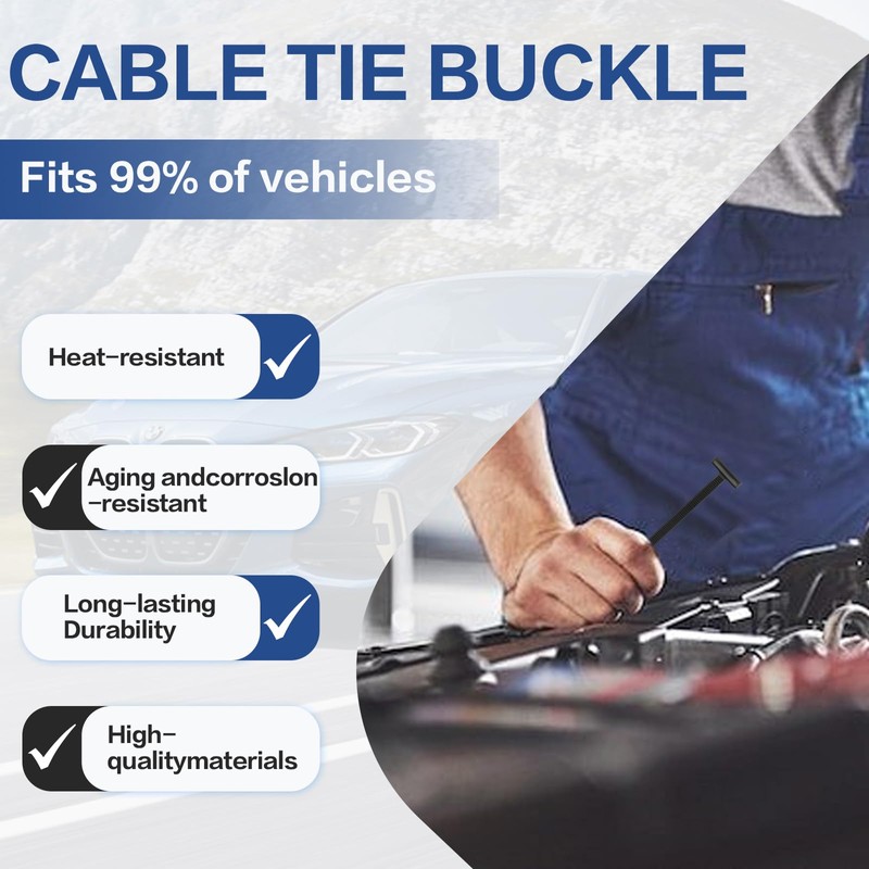 - ✅ Heavy-Duty, Weather-Resistant Nylon Crafted from high-strength nylon, these cable tie buckles are built to withstand extreme heat, rain, vibrations, and daily wear. Corrosion-resistant and anti-aging, perfect for both indoor and outdoor use, including automotive engine bays.