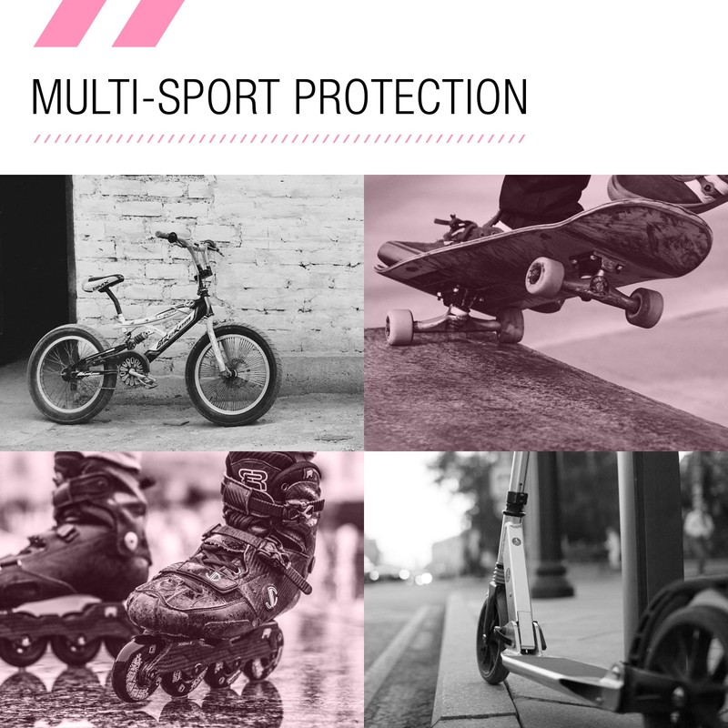 - Protective gear for kids includes two wristguards, two elbow pads, and two knee pads for biking, skateboarding, rollerblade, longboard, hoverboard, scooter, skating and other outdoor sports.